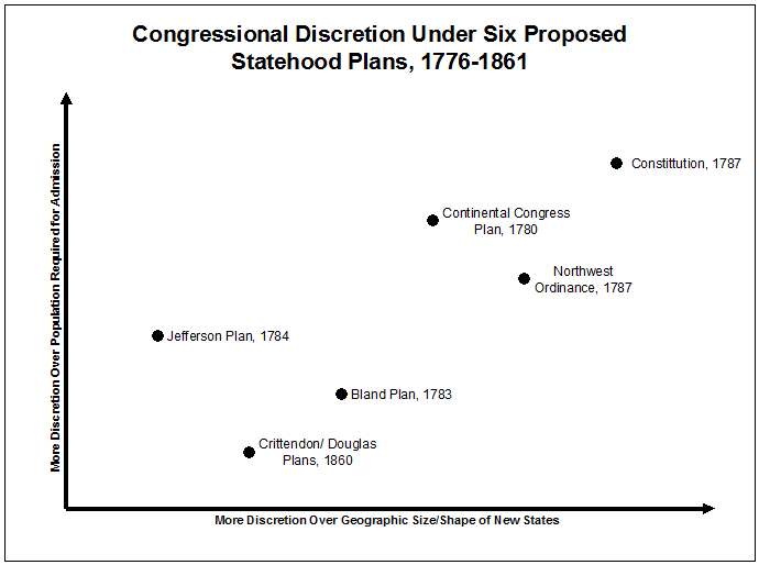 As can be seen, the actual plan adopted in the Constitution is the most radical of all the plans, giving Congress complete discretion over admission, with no Constitutional minimum requirements for size and/or population requirements for new states, or any guarantee of statehood for a territory regardless of how large the territorial population became.